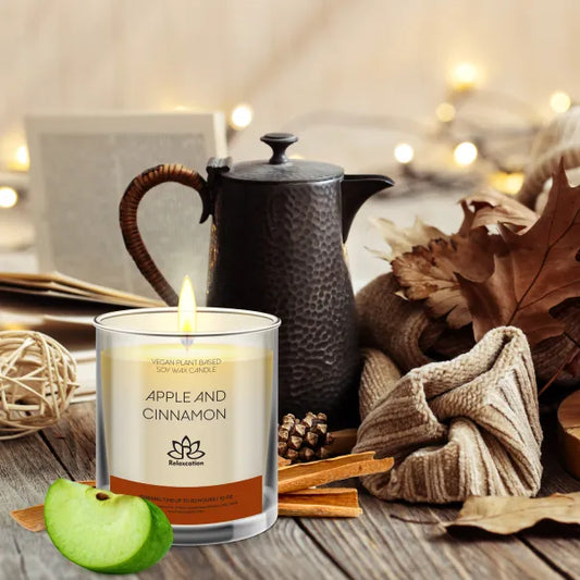 APPLE AND CINNAMON Soy Wax Candle in Glass Jar (10 oz)