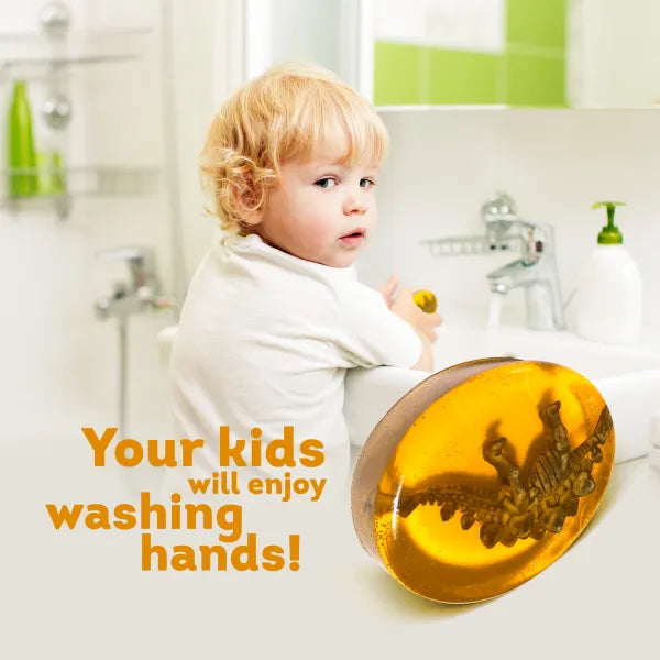 - FOSSIL INSIDE SOAP BAR FOR KIDS: Glycerin Soap Bar with Essential Oil "FLORIDIAN ORANGE" For Kids with Fossil Toy Inside