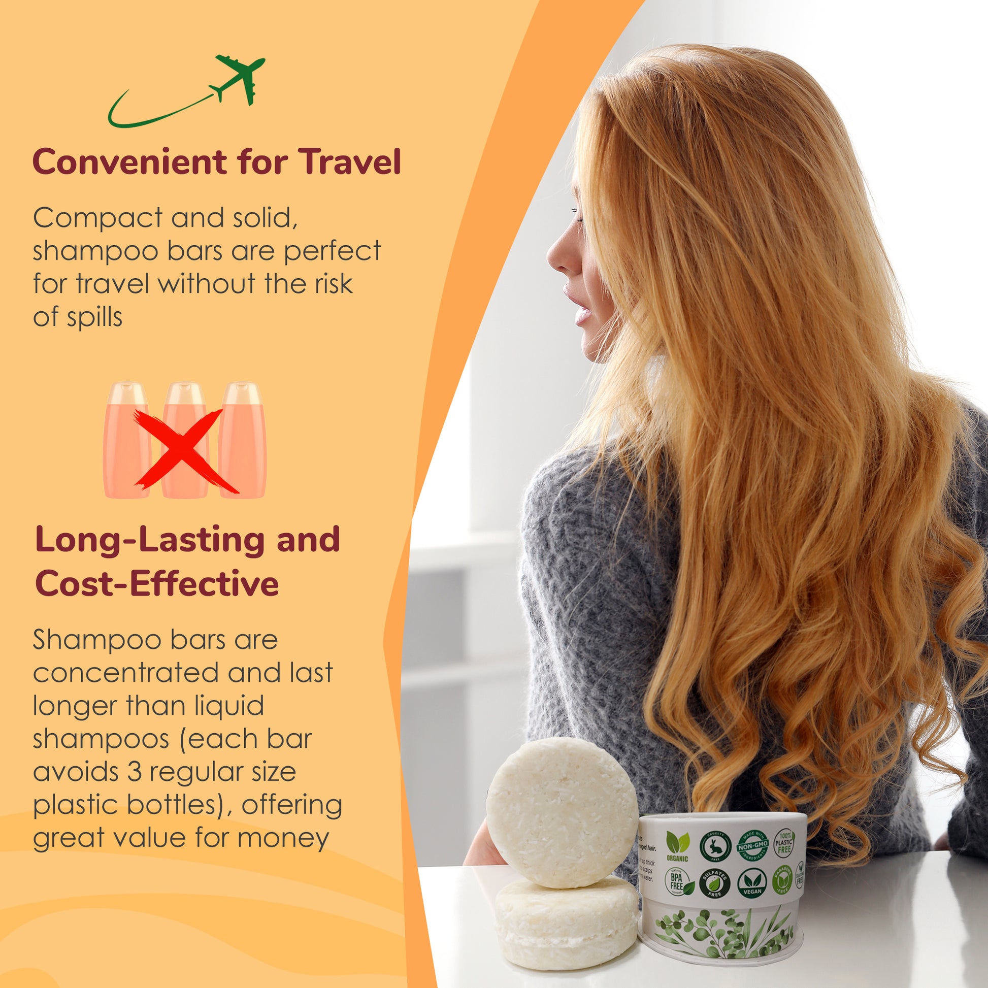 - OUR SHAMPOO BAR COMES IN COMPACT TRAVEL-FRIENDLY CASE: Always on the go? Our small, solid shampoo bar is perfect for travel, fitting easily into your luggage without the risk of spills, making it a convenient choice for maintaining your hair care routine anywhere.