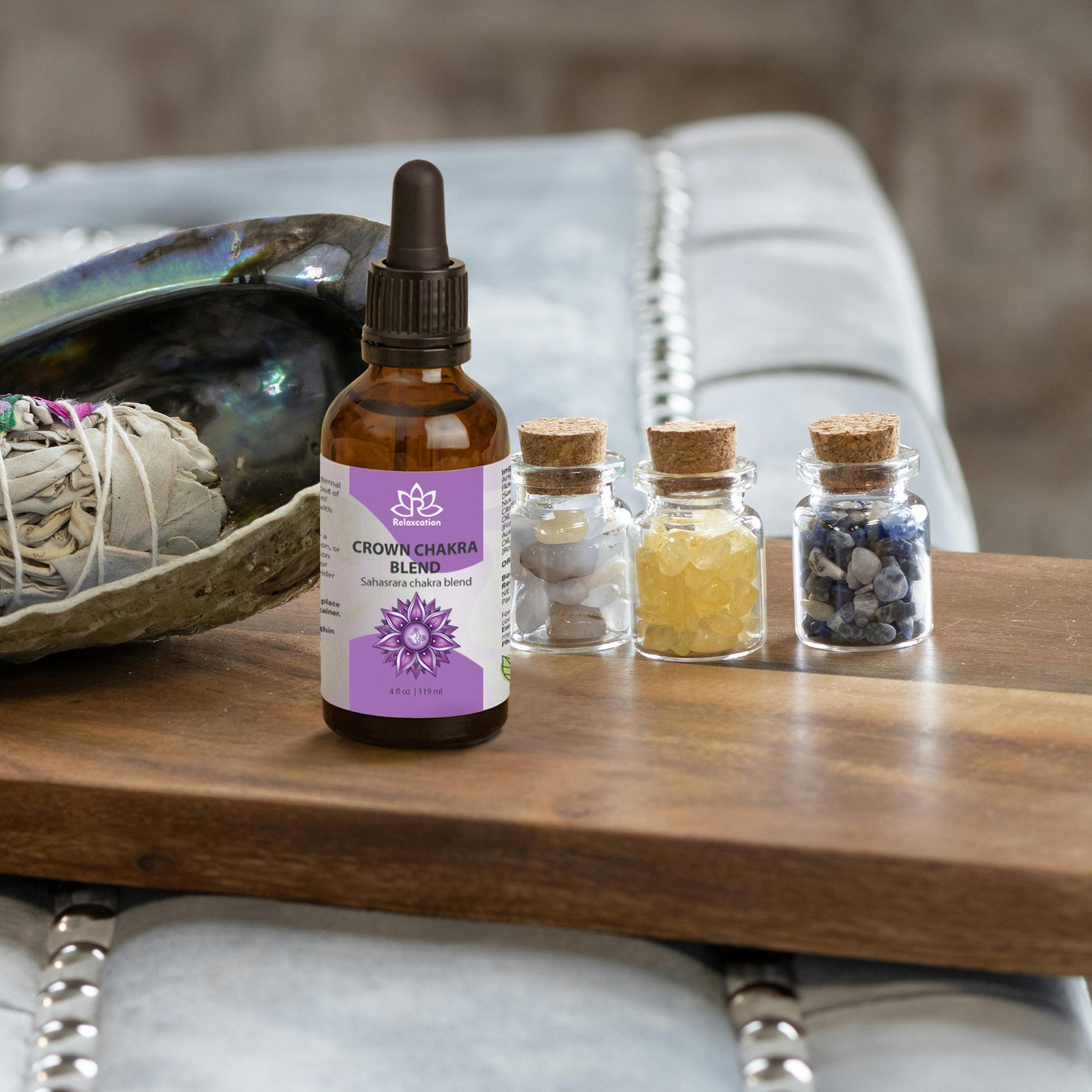 Elevate your energy and awaken higher consciousness with our Crown Chakra (Sahasrara) Blend, designed to support serenity, enlightenment, and spiritual connection.