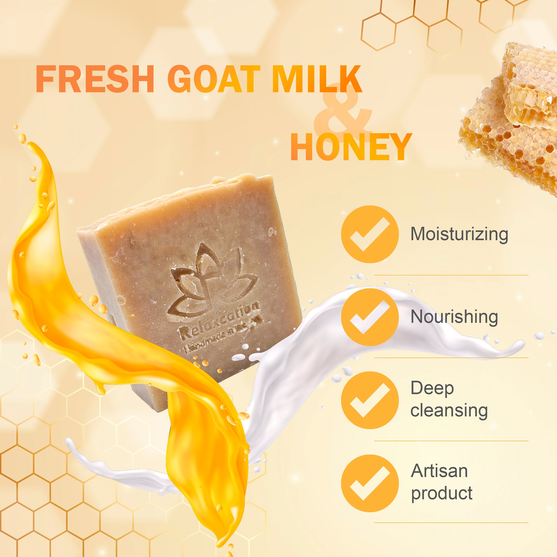 - REAL FRESH GOAT MILK AND HONEY SOAP: Made with the goodness of real fresh goat milk and natural honey, our soap provides nourishing and moisturizing benefits to the skin.