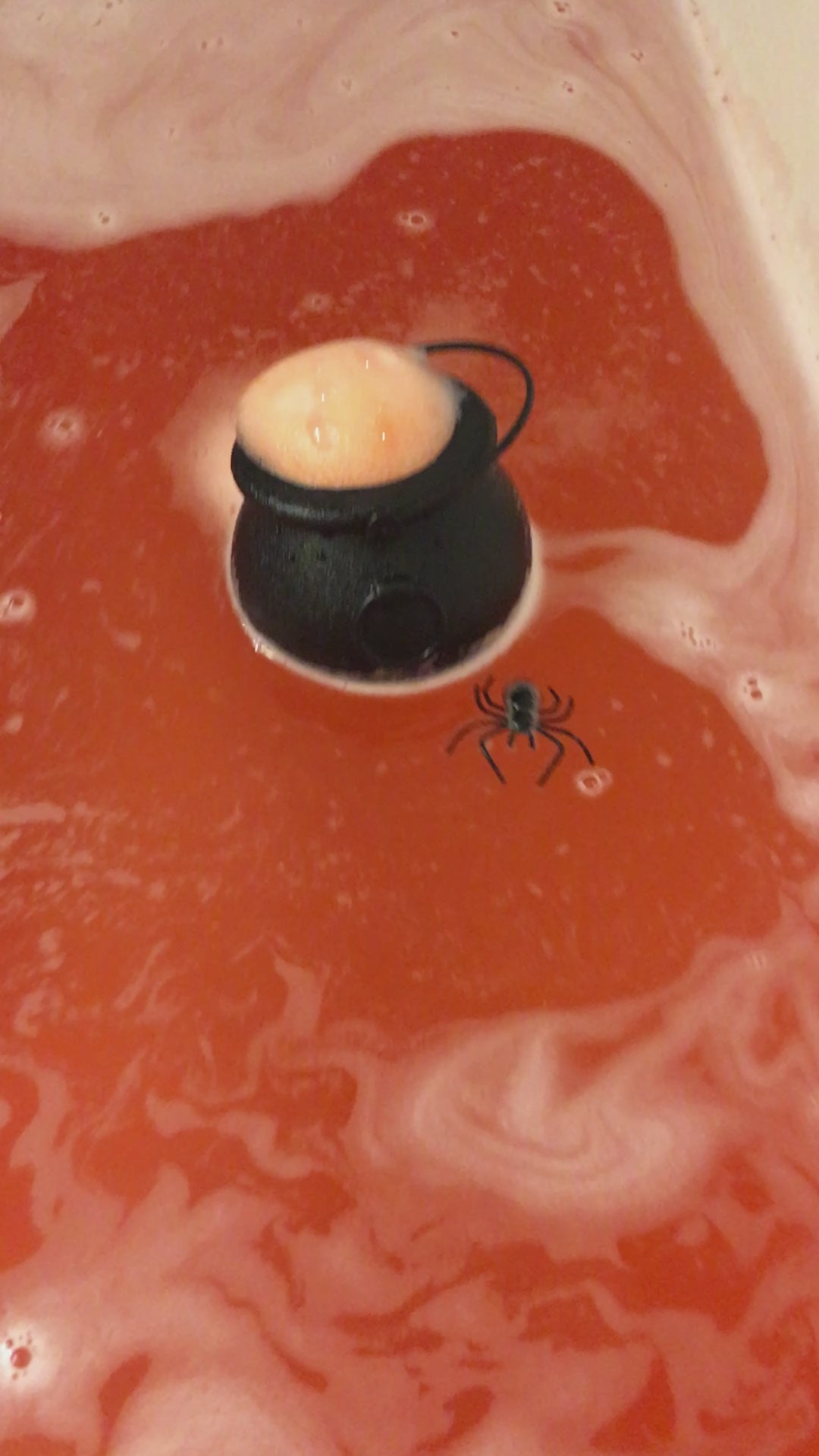 - HALLOWEEN BATH BOMB WITH SCARY SURPRISE INSIDE! Witch Cauldron Bath Bomb! It has an orange color and also the surprise scary toy in the middle and on top! Bubble Bath Bomb Handcrafted with the best ingredients into a tiny cauldron. Drop it in your tub and reuse your cauldron as you wish!