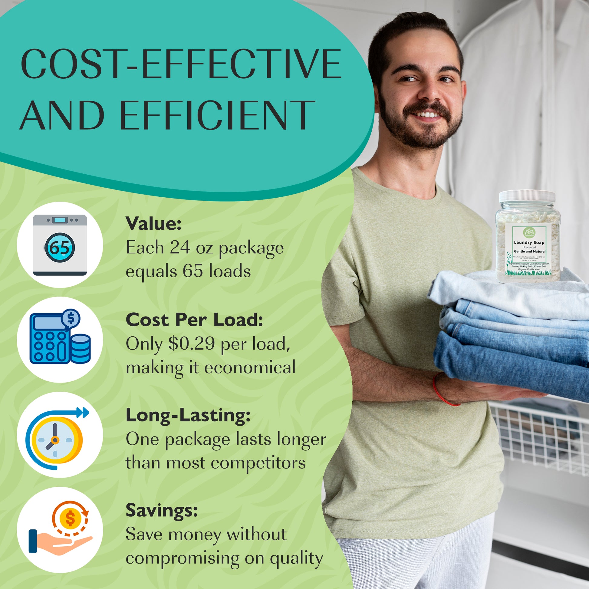 Our all-natural laundry soap is perfect for those with sensitive skin or allergies as it contains no harsh chemicals or artificial additives. It's also eco-friendly, ensuring a greener approach to laundry.