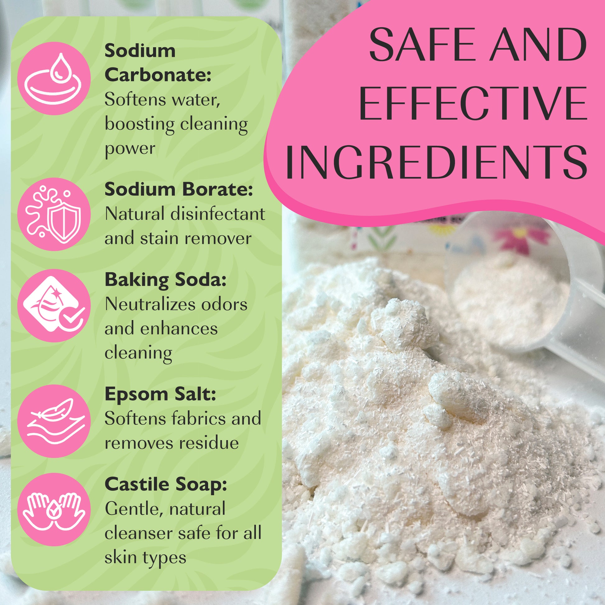 Introducing our all-natural laundry soap, a perfect solution for clean and fresh laundry! Made with a carefully curated blend of only six simple ingredients, our laundry detergent is designed to be gentle on your clothes, your skin, and the environment. Say goodbye to harsh chemicals and hello to a natural cleaning experience!