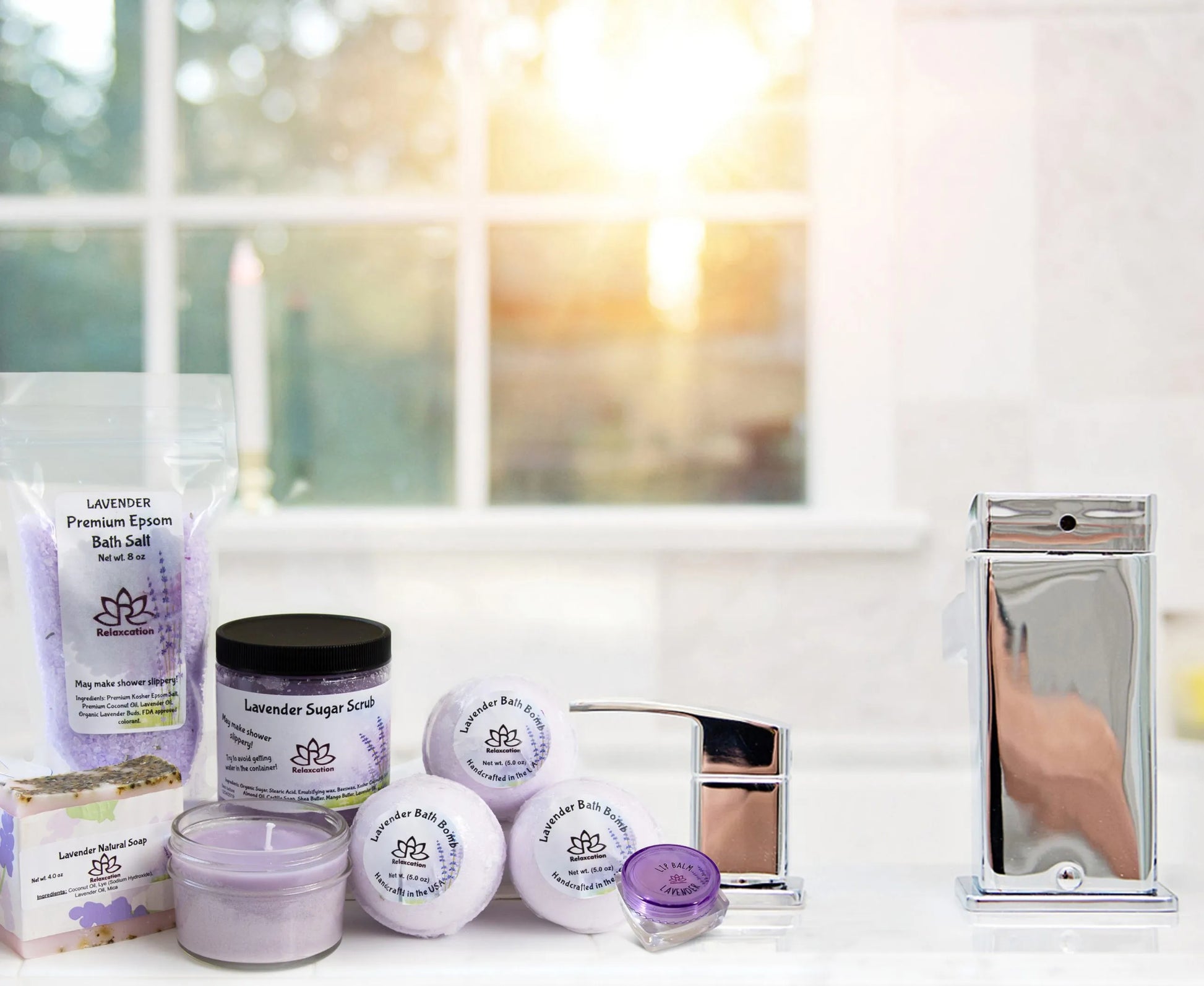 - BEAUTY KIT CONTAINS: 1 LAVENDER moisturizing natural SOAP, 3 BATH BOMBS with Lavender Buds and Dead See Salt, 1 SOY WAX CANDLE, 1 Lavender WAX MELT, 1 Lavender BATH SALT and 1 Lavender SUGAR SCRUB!