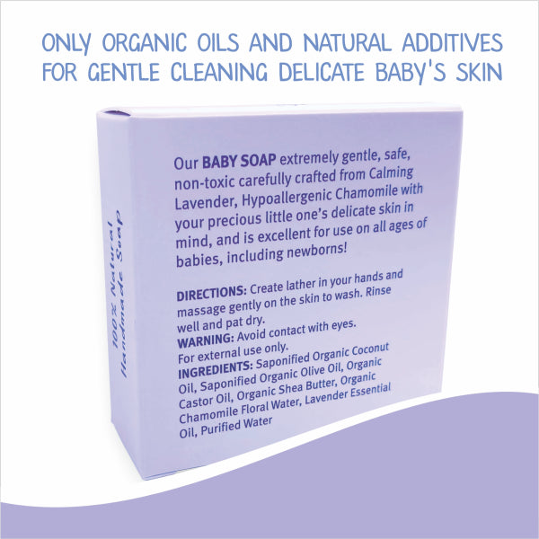 - MOISTURIZING & SOOTHING SOAP BAR - The combination of lavender oil, chamomile water, and shea butter work together to soothe and moisturize your baby's skin. Keep their skin healthy and soft with our all-natural soap for kids.