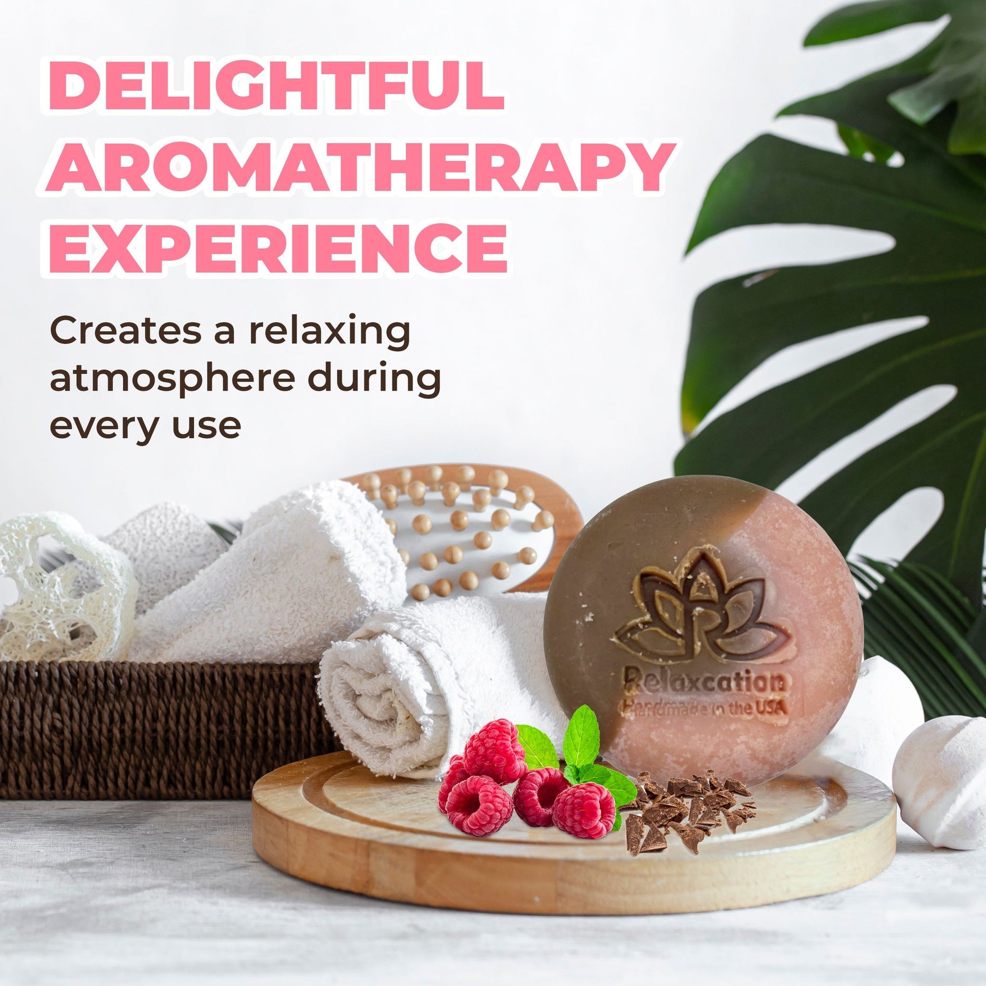 - Luxurious Blend: Immerse yourself in the decadent fusion of raspberry and chocolate with our natural soap for women and men.