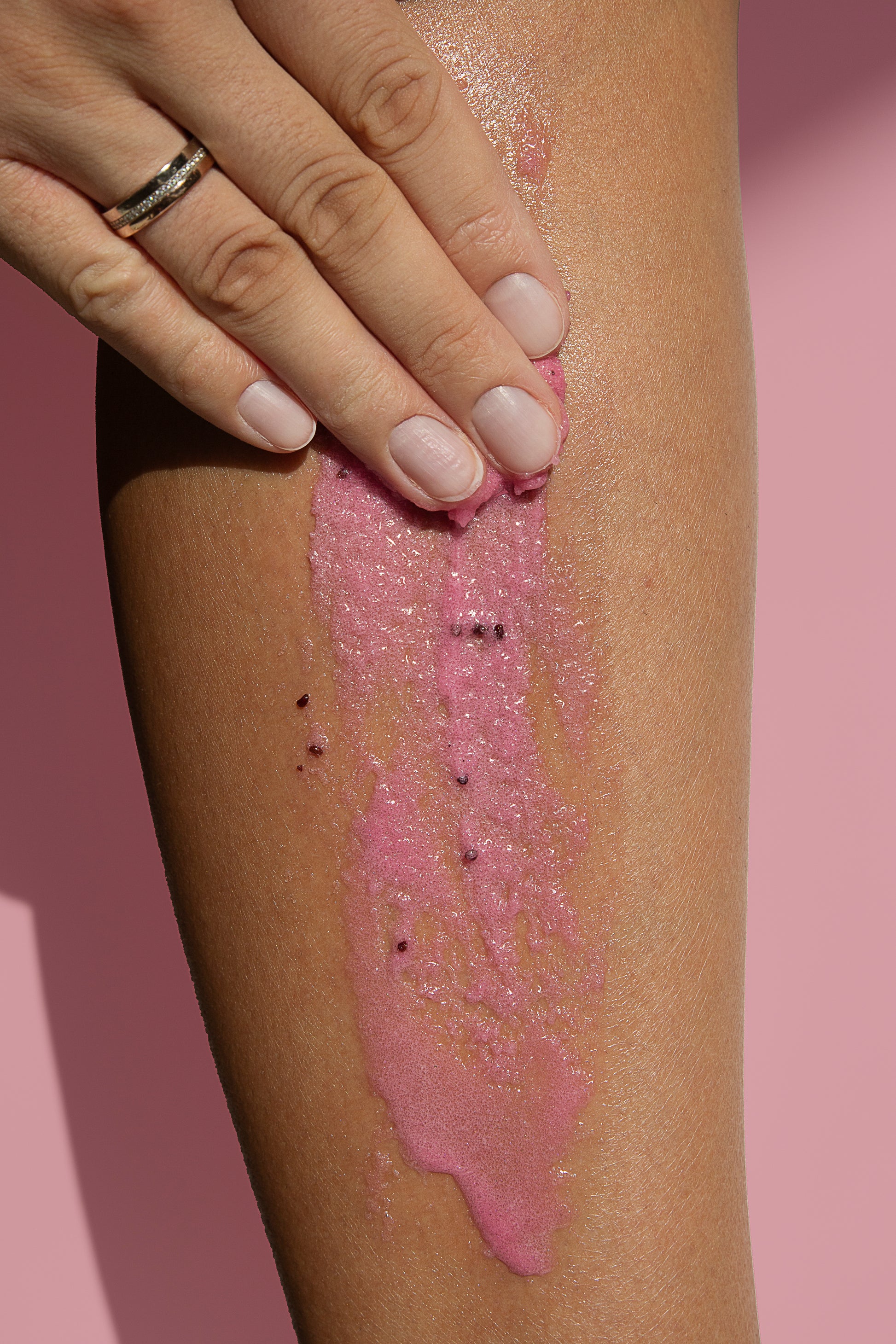 Our Rockin' Raspberry Sugar Scrub Souffle comes in a convenient 4 oz jar, making it perfect for use in the shower or bath. Simply scoop out a small amount and massage onto wet skin, focusing on areas that need extra exfoliation, such as elbows, knees, and heels. Rinse off with warm water and enjoy the sweet and fruity scent of raspberries.