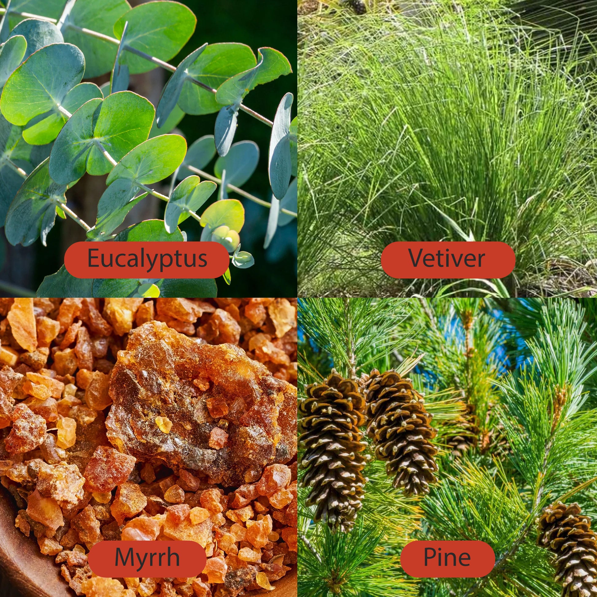 A grounding blend to cultivate safety and stability. Vetiver, Myrrh, Frankincense Carterii, Grapefruit, Scots Pine, Nagarmotha and Carrot Seed