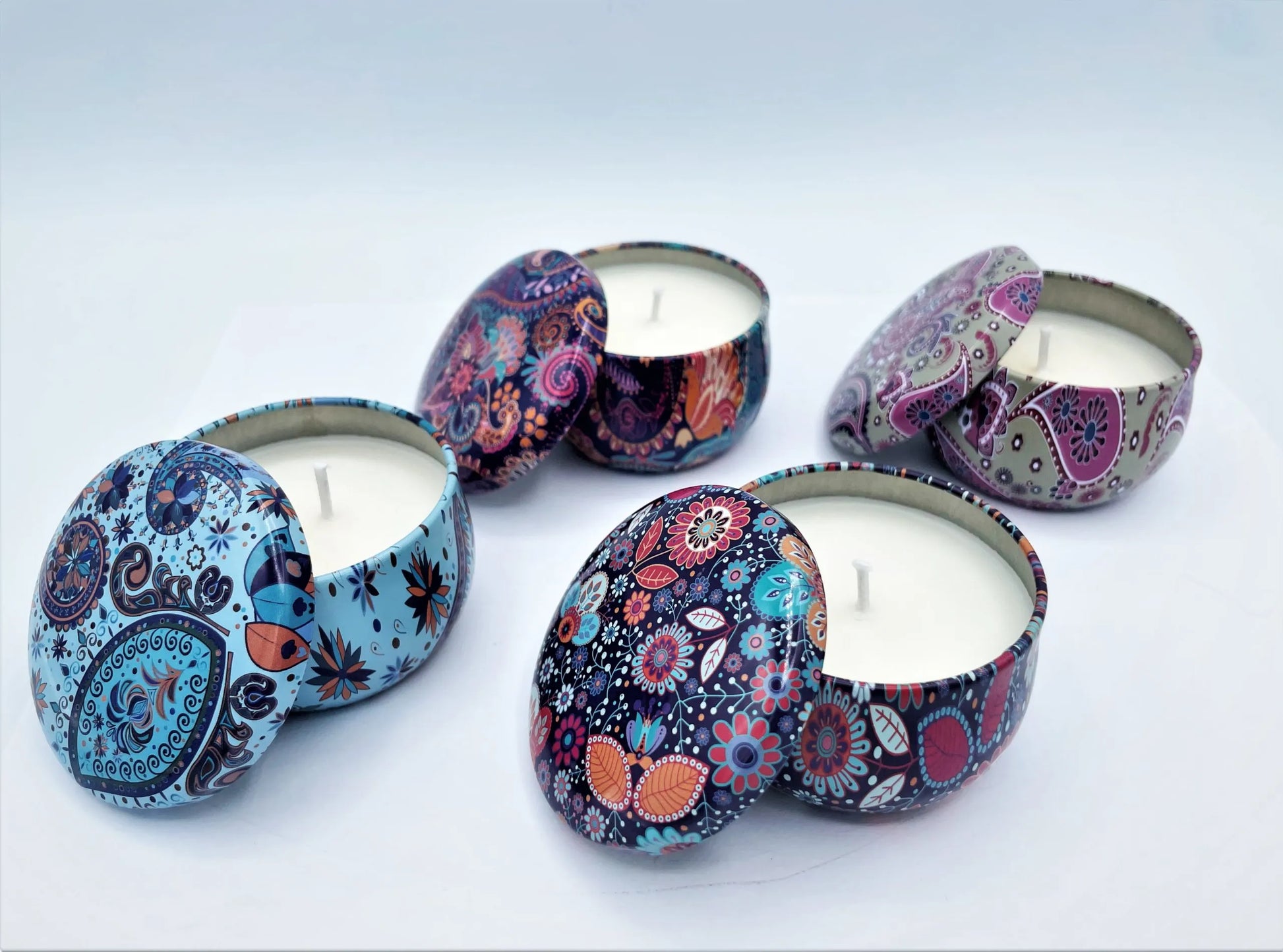 Each of our soy wax candle tin boxes is beautifully decorated with a unique design and comes filled with a delicious scent that will fill any room. Our scented candles make the perfect gift!