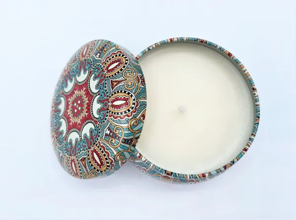 - DECORATIVE GIFTABLE METAL TIN - This candle comes in a beautiful multicolor metal tin that's perfect for gift-giving! The sleek design is sure to please, and the tin can be reused long after the candle is gone.